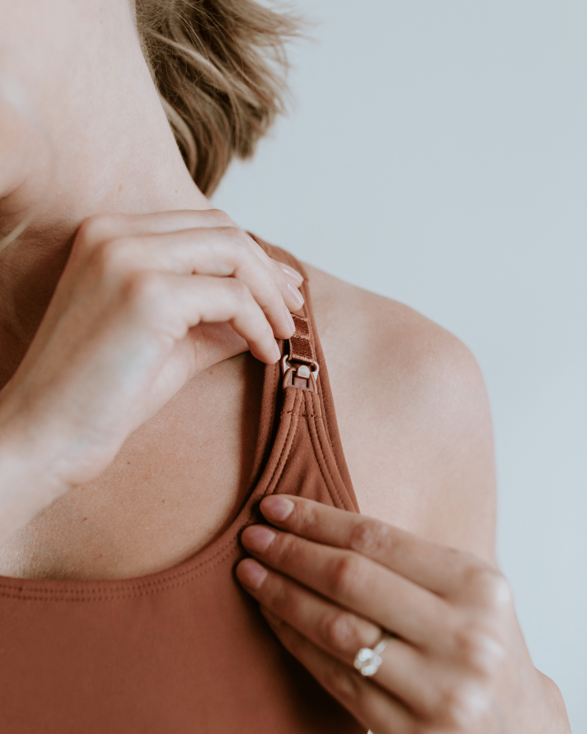 Crafted with intention, our nursing bra features a refined, one-handed clasp and smooth pull-down design to keep your little one’s face free and your experience seamless. Discreet, absorbent padding offers protection during unexpected letdowns, while our signature fabric — sourced over nearly a year — delivers full support with a buttery-soft, second-skin feel. This is luxury for motherhood, redefined.