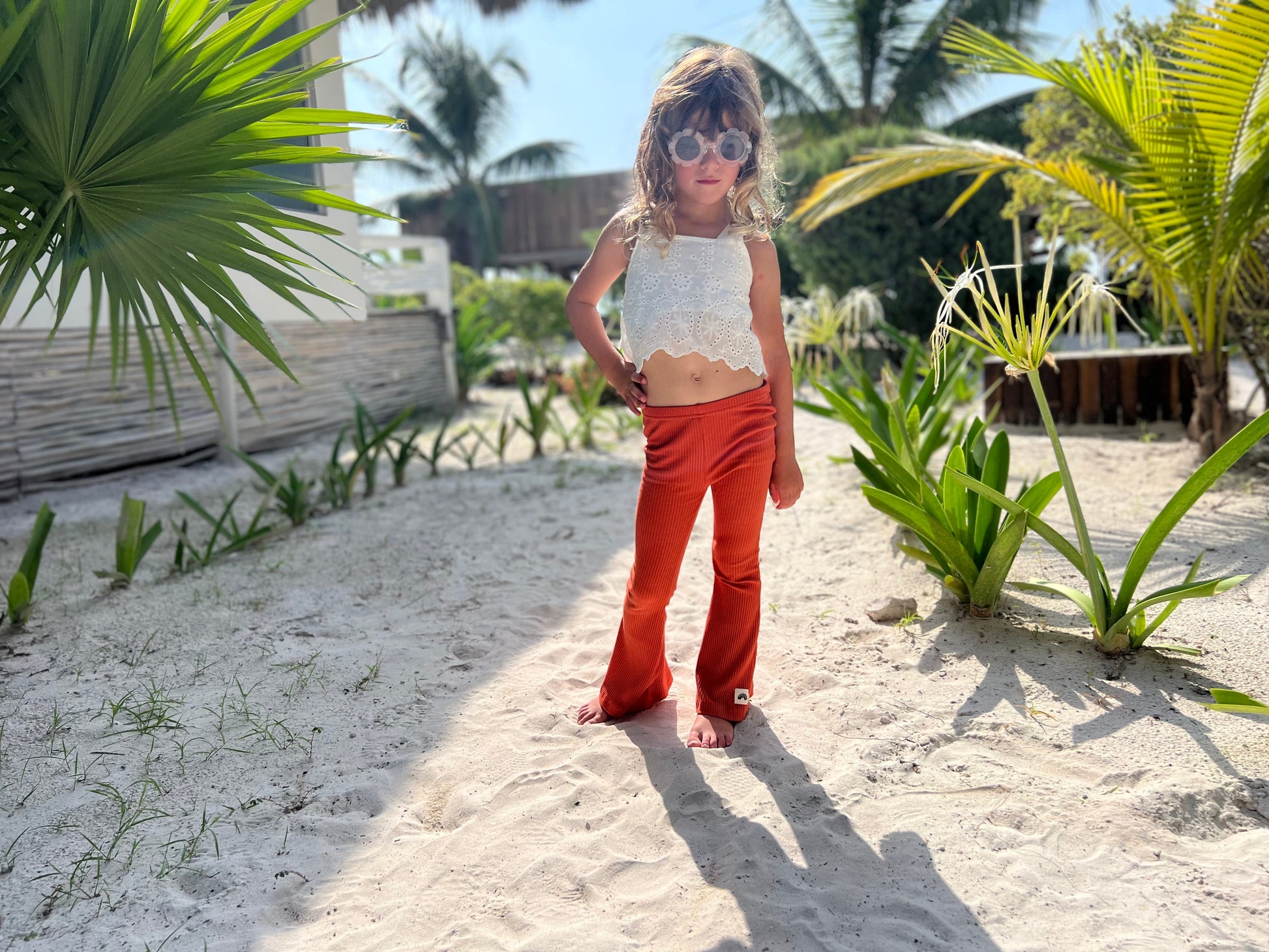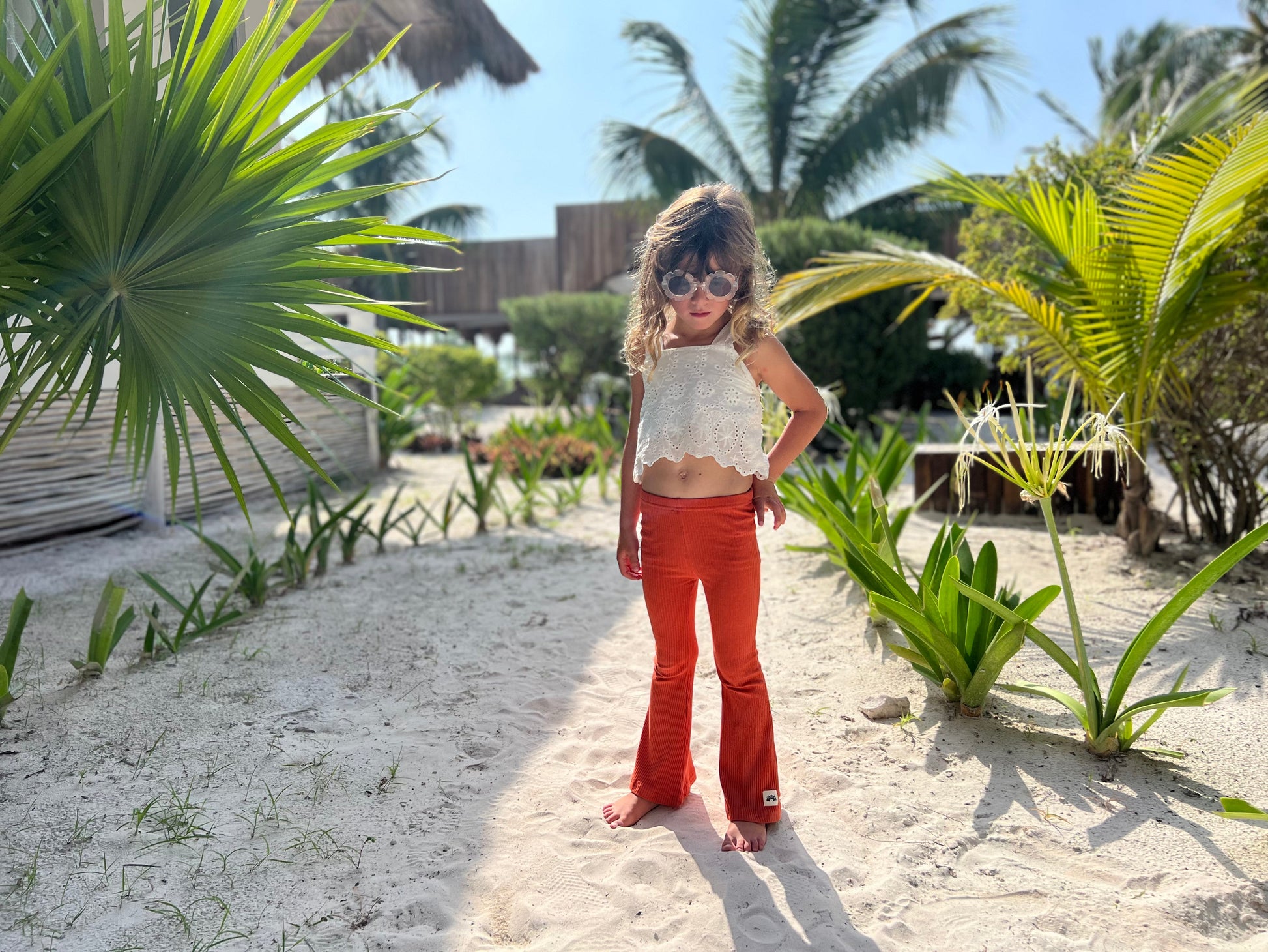 *Sizes are in the big side, we made them a bit more roomy because you can always roll the waist a bit, and it can last an extra year ;)