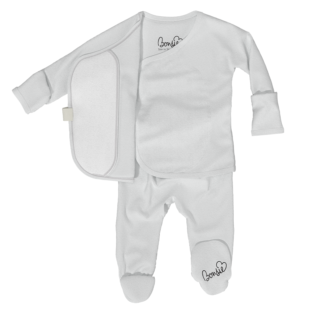 Meet the Bonsie Footie—our bestselling, skin-to-skin superstar designed to make those first days (and nights) easier, cozier, and full of connection. Crafted from our signature ultra-soft, breathable fabric, this one-piece wonder features a wrap-front design that gives you instant access for skin-to-skin bonding—without taking the whole outfit off.