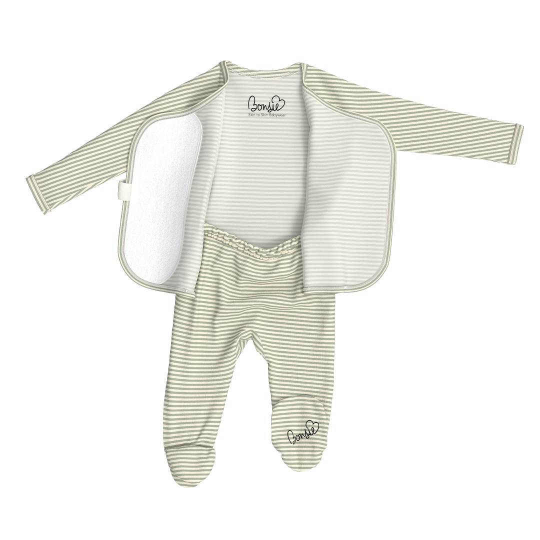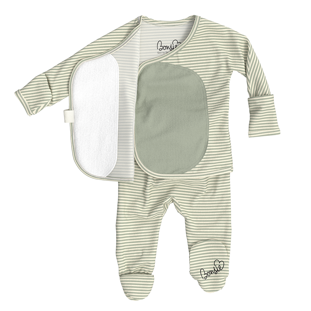 Meet the Bonsie Footie—our bestselling, skin-to-skin superstar designed to make those first days (and nights) easier, cozier, and full of connection. Crafted from our signature ultra-soft, breathable fabric, this one-piece wonder features a wrap-front design that gives you instant access for skin-to-skin bonding—without taking the whole outfit off.