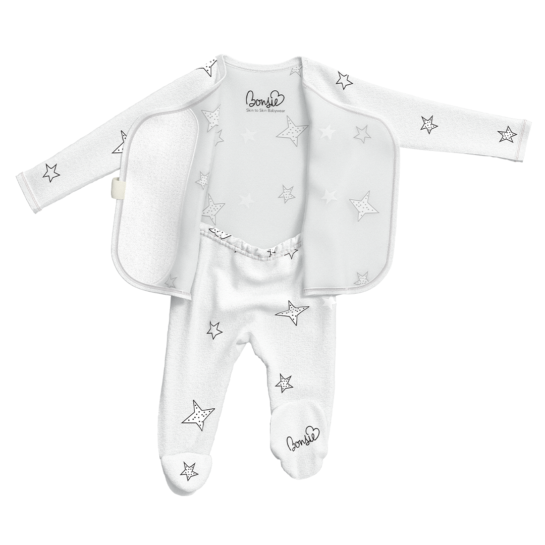 Meet the Bonsie Footie—our bestselling, skin-to-skin superstar designed to make those first days (and nights) easier, cozier, and full of connection. Crafted from our signature ultra-soft, breathable fabric, this one-piece wonder features a wrap-front design that gives you instant access for skin-to-skin bonding—without taking the whole outfit off.