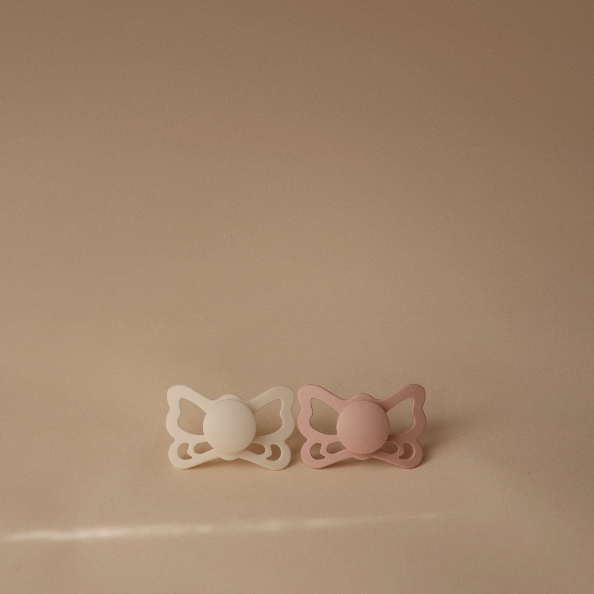 FRIGG Butterfly silicone pacifiers are thoughtfully designed and made in Denmark for your baby's comfort and safety with an improved SilkySoft™ medical grade silicone nipple. Inspired by the transformation of a caterpillar into a butterfly, the shield mimics butterfly wings and has large air holes for added safety. Designed with an anatomical nipple that mirrors the natural shape of your baby’s mouth, reducing pressure on the palate and gums to support proper oral and jaw development.
