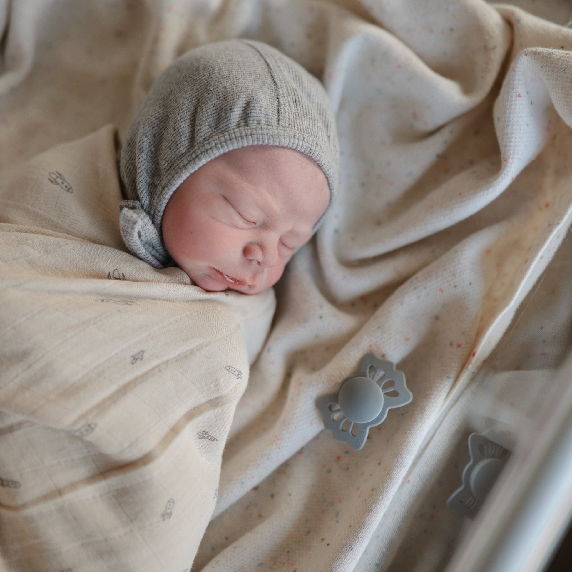 FRIGG Lucky silicone pacifiers are thoughtfully designed and made in Denmark for your baby's comfort and safety with an improved SilkySoft™ medical grade silicone nipple. Inspired by the rare four-leaf clover, the shield mimics the leaves of a clover and has large air holes for added safety. FRIGG Lucky features a symmetrical, flattened teardrop-shaped nipple that fits naturally in baby’s mouth—no matter the position. Its flatter neck helps reduce pressure on the palate and gums, supporting healthy oral and jaw development.