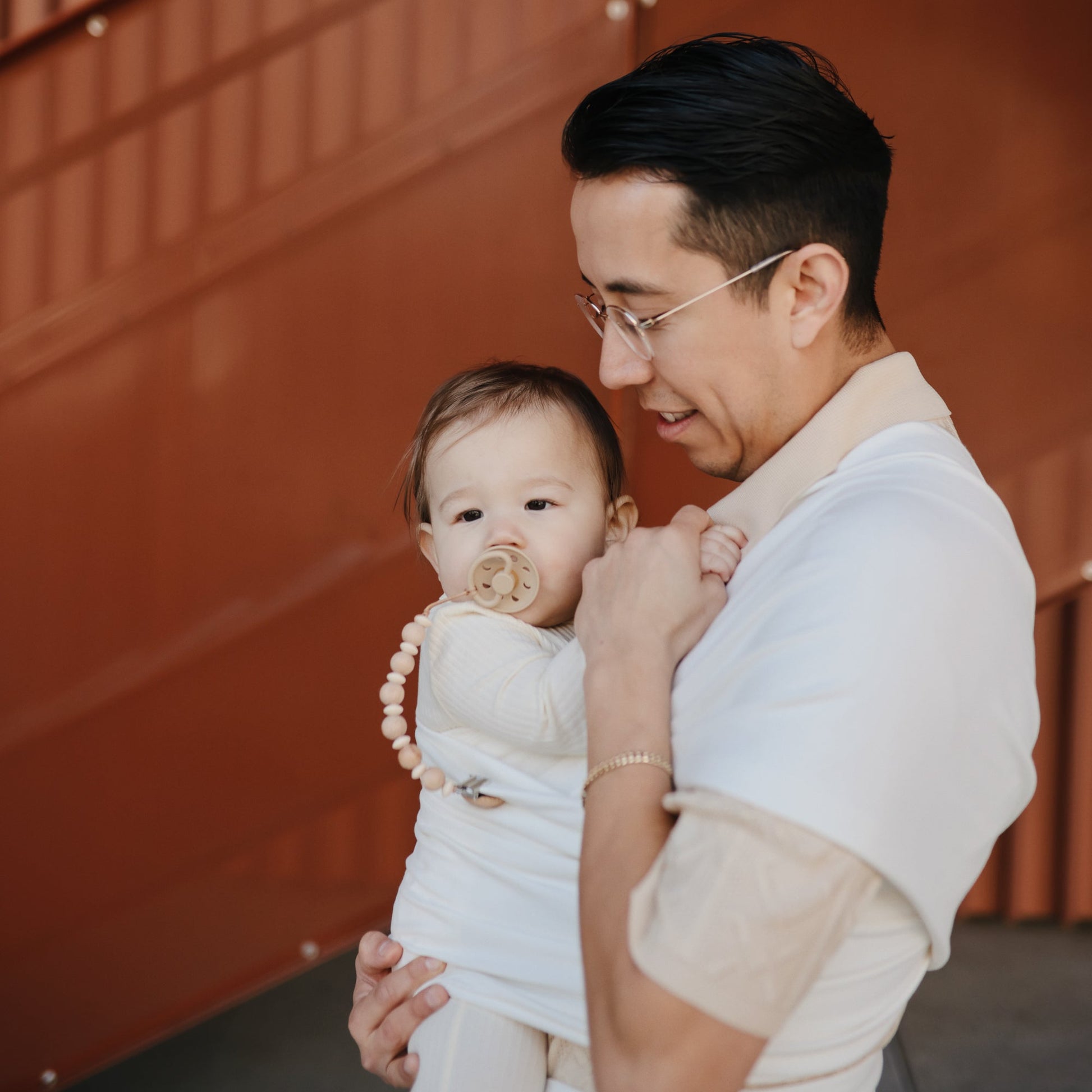 The FRIGG line of Moon silicone pacifiers are thoughtfully designed and made in Denmark for your baby's comfort and safety with an improved SilkySoft™ medical grade silicone nipple and patented Click-Lock® system. The outward curve keeps the pacifier off baby's delicate skin, while moon-shaped air holes and a security handle give parents extra peace of mind. Available in a range of soft colors, FRIGG Moon pacifiers make a beautiful addition to your collection of baby essentials.