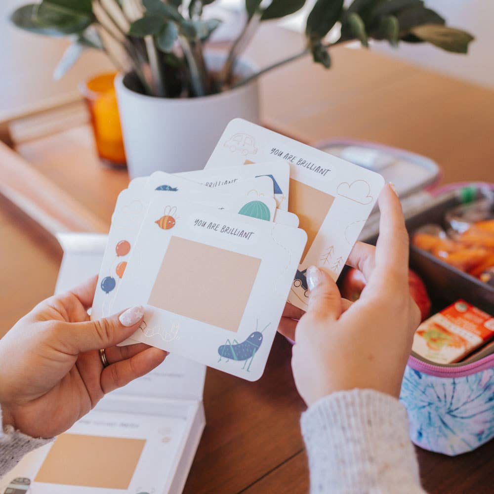 Make opening school lunch feel like opening a treasure chest! Lunchbox Notes is a set of scratch-off "adventure notes" that you hide in your child's lunchbox. Designed to spark creativity, play and friendship, these cards will inspire your kid to try new things and create fun memories at school. They're also a fun, easy way to connect with your child. With 28 scratch-off adventure cards, your kid will look forward to school, knowing that an adventure awaits!